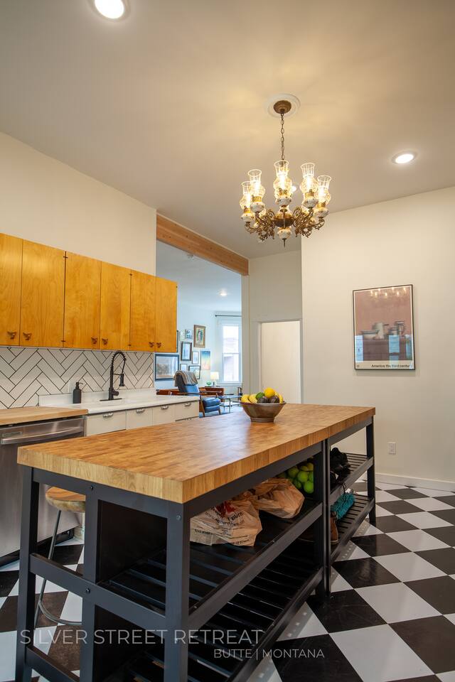Silver Street Retreat is conveniently located just half a block away from 'People's Park,' where you can enjoy covered gazebos and an ice skating rink during the winter season. For a quick lunch or dinner, your rental is 0.3 miles from La Sierena Mexican Food (closed Mondays & Tuesdays). Montana Tech University is only 0.5 miles away, and you'll find yourself near the fascinating World Mining Museum. Within a short distance of 0.6 miles north, you'll discover the delightful Hummingbird Cafe, which serves until 3 PM. 0.6 miles east is the St. James Hospital and 'Chester Steel Park.' For those interested in spirits, Headframes Spirits distillery is just 0.8 miles away. The heart of Uptown Butte is a mere 1 mile from the Silver Street Retreat, offering a vibrant atmosphere with attractions such as the Montana Axe & Bar Throwing Co, the 5518 Retail Shop, Beautiful Life Boutique, the Saturday Farmer's Market, and the Montana Folk Festival held every July. To satisfy your culinary cravings, Pekin Noodle Parlor awaits you at a convenient distance of 1.1 miles, nestled on the edge of Butte's historic Chinatown.